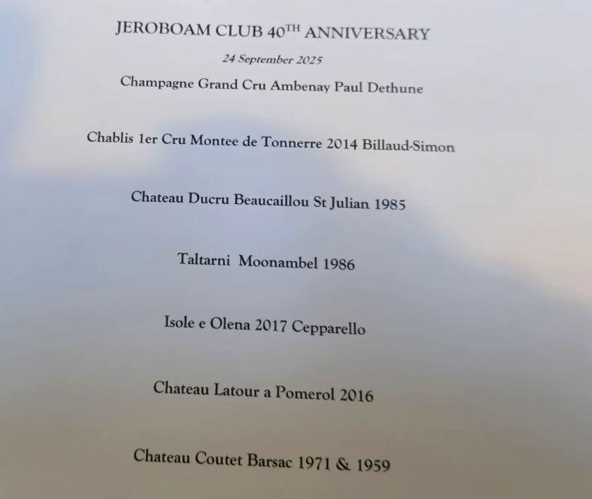 I am a member of a couple of wine tasting clubs and a highlight tends to be the dinners. This year was the 40th anniversary year for the Bristol based Jeroboam Club ( at the Pumphouse in Bristol) and boy did we have a treat food and drink wise.