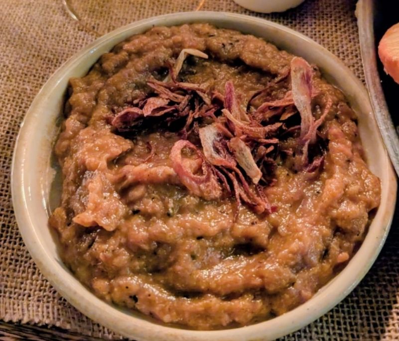 First up was a aubergine number, which was heady with char from the cooking of the aubergine, infused with tangy tomatoes and enriched with egg yolk. Crispy, fried shallots added a nice textural contrast.