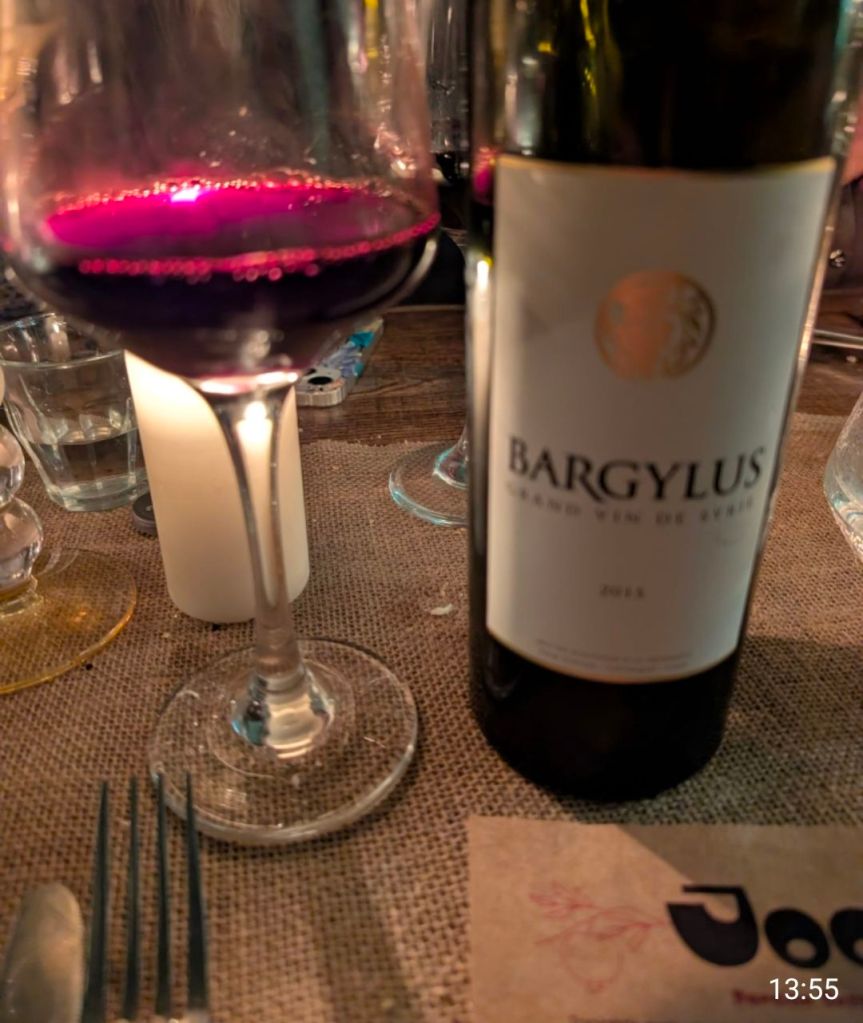 Lots of spice and intense black fruit, as well as black olive and herbal notes. Really good wine this that worked a treat with the food and (rather blowing my own trumpet) I thought it was a rather inspired pairing.