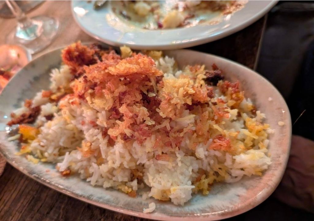 A load of buttery saffron rice (tahdig),