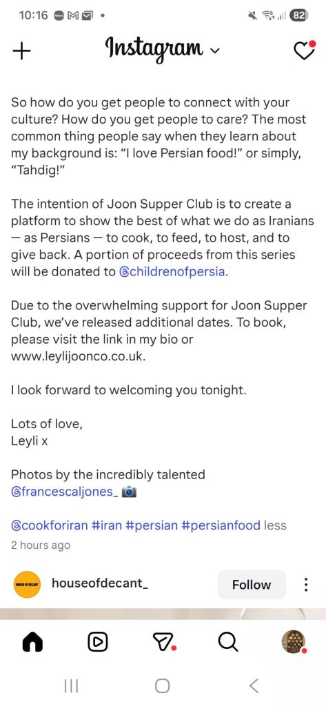 What we got at the Joon Persian Supper club seemed to me to be a perfect example of this, with a joyful meal of abundance in terms of both flavour and proportions.